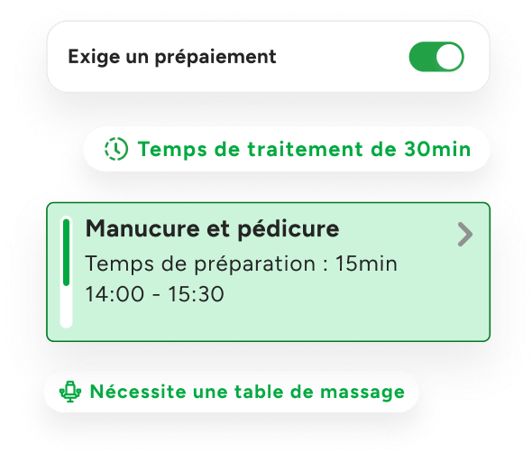 Chaque membre du personnel et chaque client est différent. Votre système de réservation gère tout cela facilement, offrant à chacun une expérience personnalisée et optimisant votre emploi du temps.